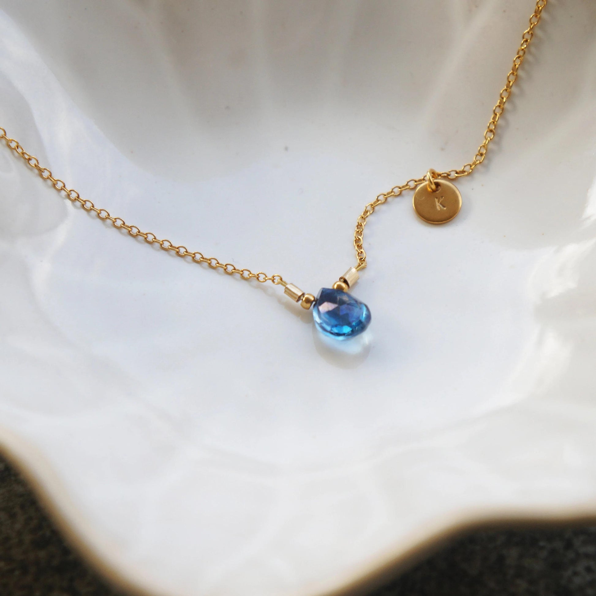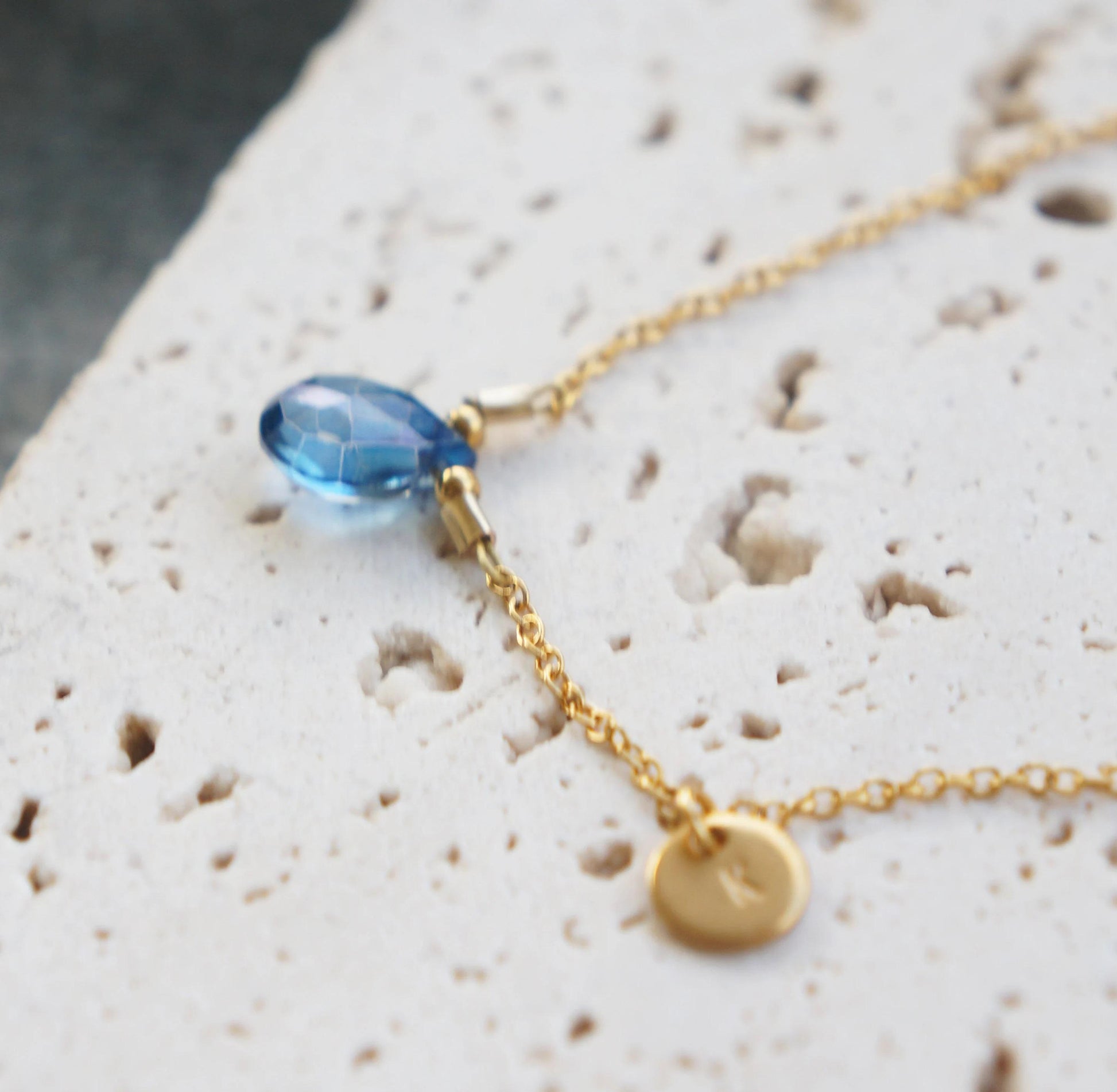 Crafted with an exquisite blend of elegance and simplicity, this blue quartz briolette bracelet is a stunning piece to adorn your wrist. The delicate gold minimalist chain showcases the beautiful briolette cut quartz, adding a touch of sophistication to any outfit.